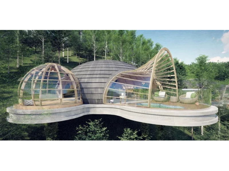 中空钢化玻璃、防腐木挂板、PVC膜布